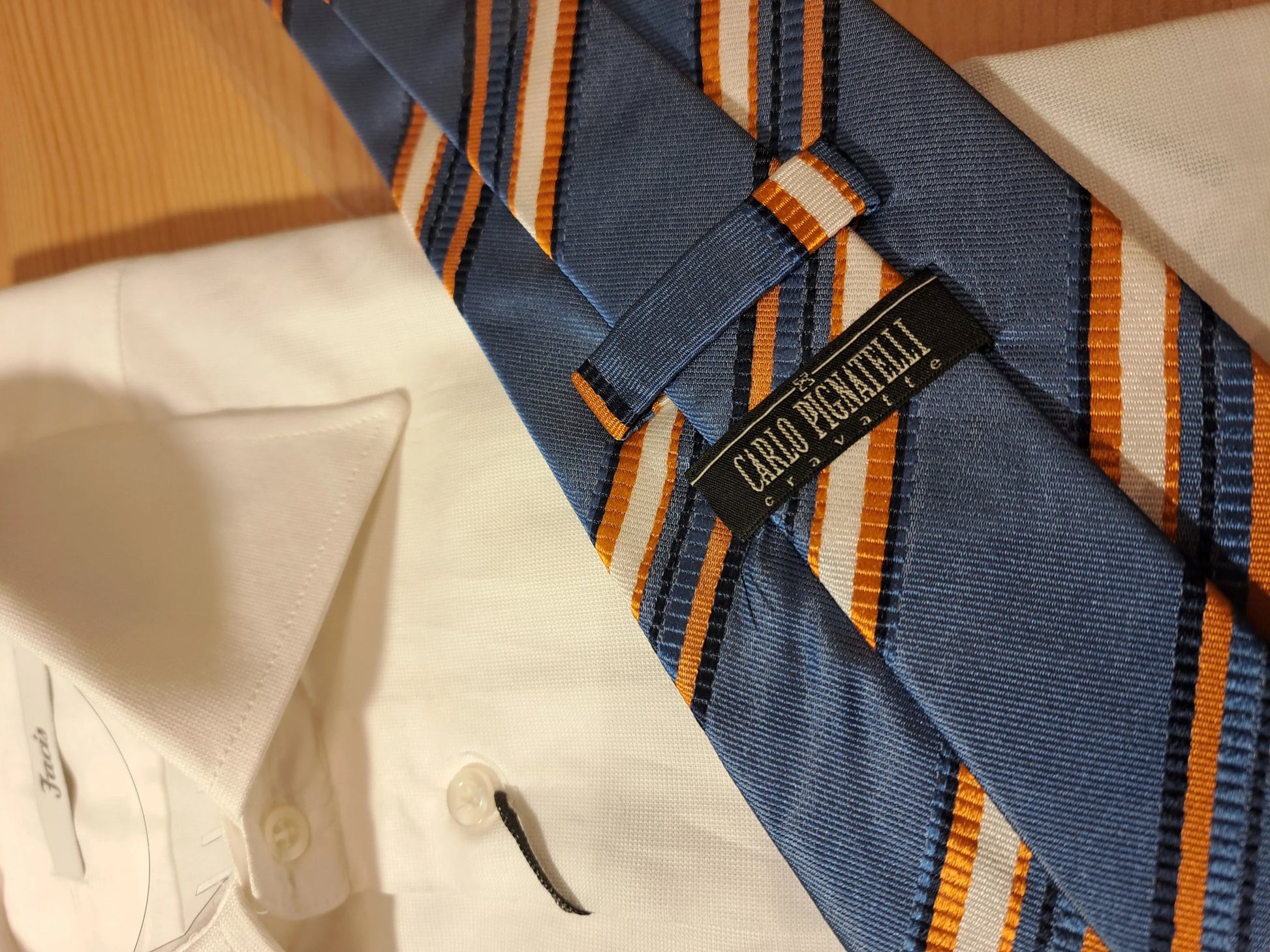 Questa elegante cravatta firmata Carlo Pignatelli è realizzata in seta 100% di alta qualità, garantendo una morbidezza e una lucentezza superiori.